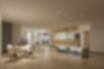 Warm, cozy and little luxury feeling of an apartment. White, simple background contrast with deep color wood-made furniture.
